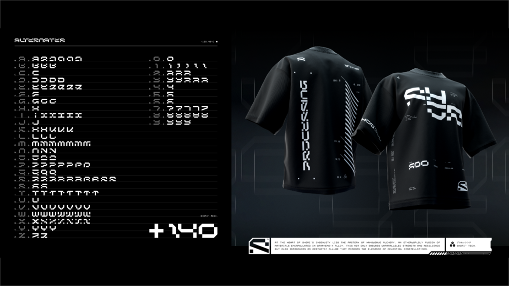 Shori Typeface, a precision font inspired by mechanical engineering. With 600+ glyphs and 140 alternates across Condensed, Regular, and Extended styles, Shori is a pragmatic tool for diverse design applications. Each keystroke delivers calculated impact, devoid of artistic embellishments. Welcome to Shori – Where Font Precision Meets Mech Practicality.