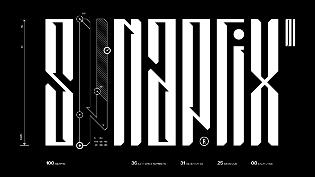The innovative and highly inspirational typeface that brings a whole new level of creativity to your design projects. Synaptix features minimalistic letter and number forms with a strong emphasis on tall and slender shapes that give your visuals an ultramodern feel sure to capture the eye of any audience. Ideal for those looking to bring a real sense of confidence and authority to their work, the italic version adds an extra intricate touch, allowing you to convey expressionism and dynamism through its medium. Make the most out of this amazing display typeface and make any visual project stand out today; with Synaptix at your side, you’re guaranteed success!